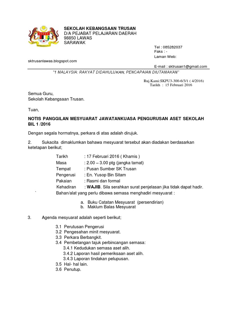 1 memo minit mesyuarat docx triple a enterprise sdn bhd 31 jalan equine 9. Surat panggilan mesyuarat aset 1 2017 theme hill. Memo dan surat panggilan mesyuarat staf kali pertama 2020 sumber pendidikan.